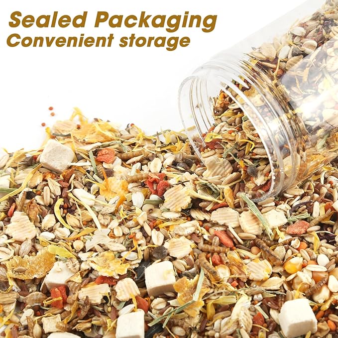 • Nutritious Blend: 9.52 oz (approx. 270g) The hamster treats formula includes a balanced mix of seeds, proteins, grains, Plant-based, and a complete and wholesome diet for your furry friend, to support health and digestion